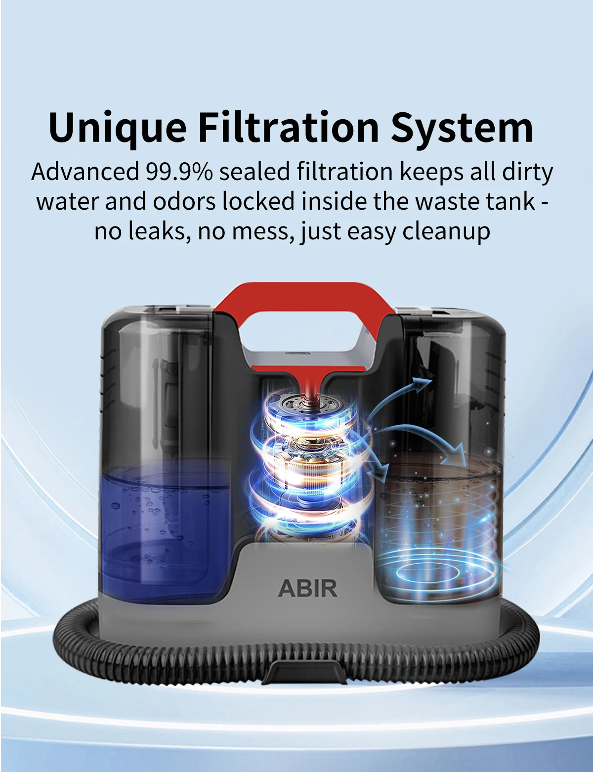 Advanced 99.9% sealed filtration keeps all dirty water and odors locked inside the waste tank .no leaks, no mess, just easy cleanup