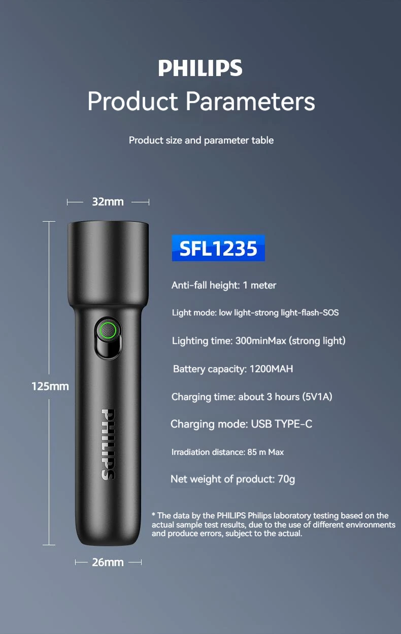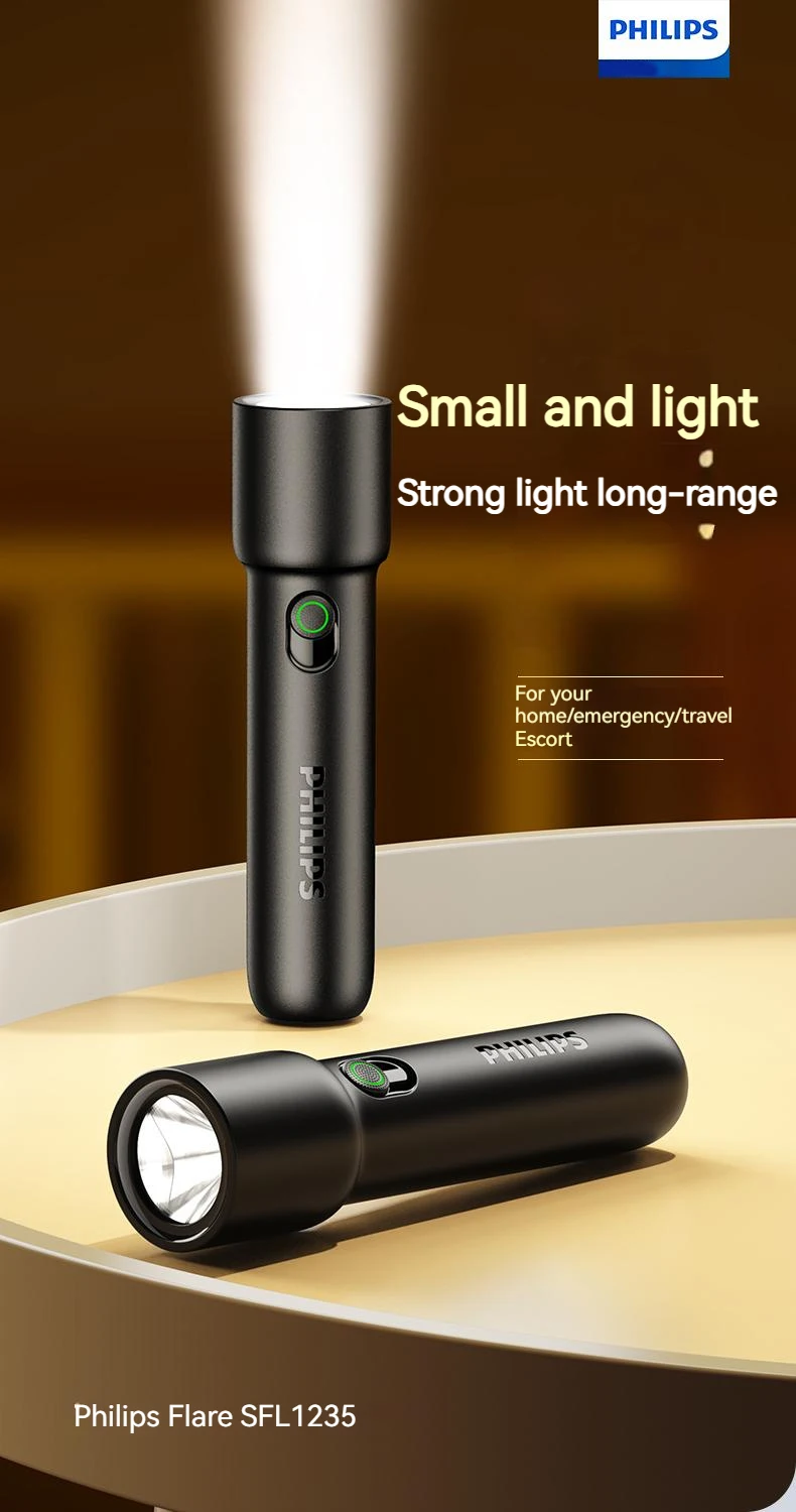 Philips 2024 New EDC Portable Flashlight Rechargeable LED Flashlights for Defensa Personal Self Defense Camping Hiking
